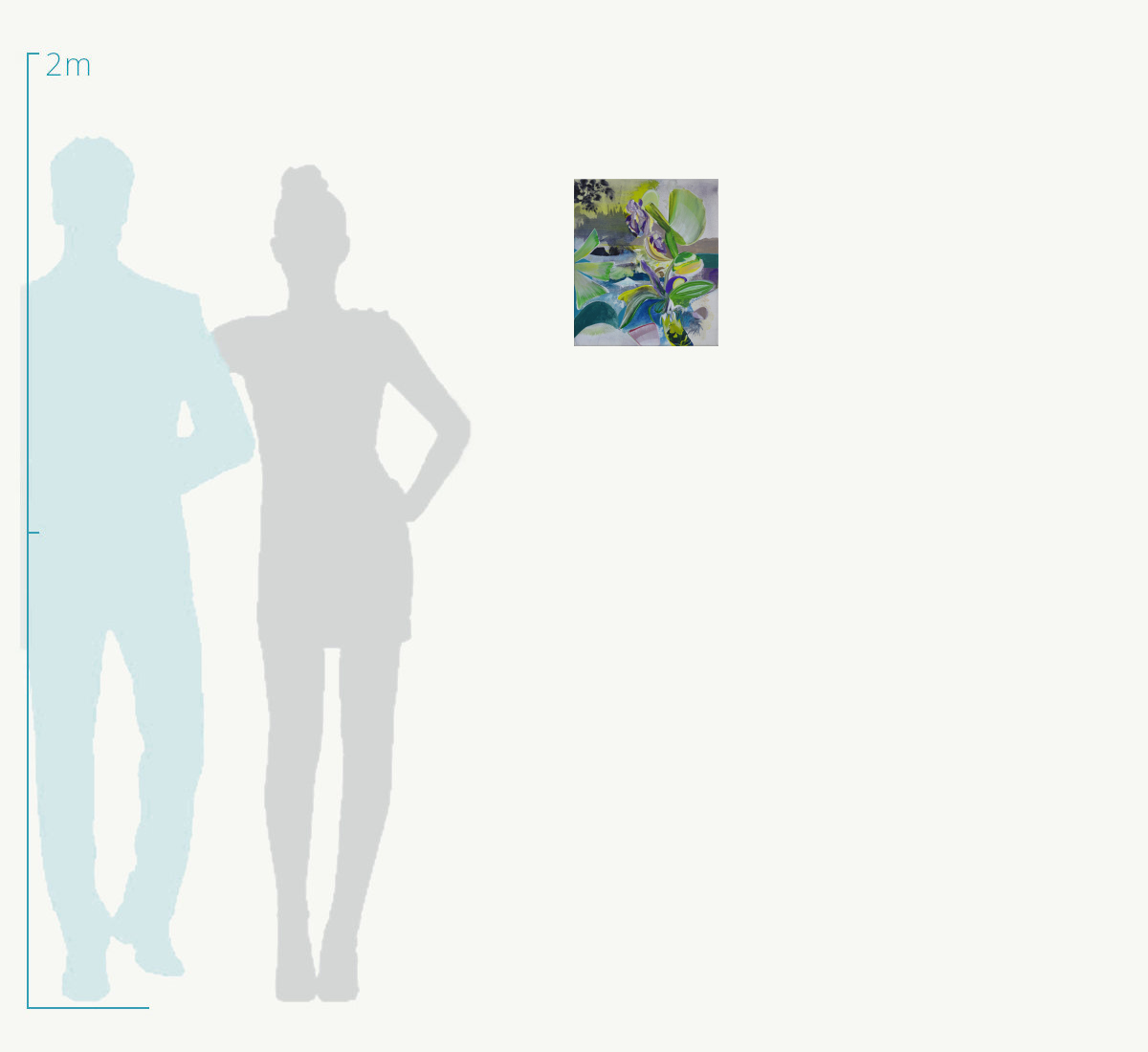 „Queen´s view“ ist neben „At the red pond“ und „Sublimation“ die dritte in der artothek verfügbare Arbeit der Werkserie Shapeshifting 2021-23 von Tatiana Urban. Im Hintergrund dieses Bilds lassen sich gut die zufällig gebildeten Formen der wasserlöslichen Farben auf der Leinwand erkennen, die von der Künstlerin aufgegriffen und in ihrem malerischen Prozess weiter entwickelt, ausgeformt und verdichtet werden.