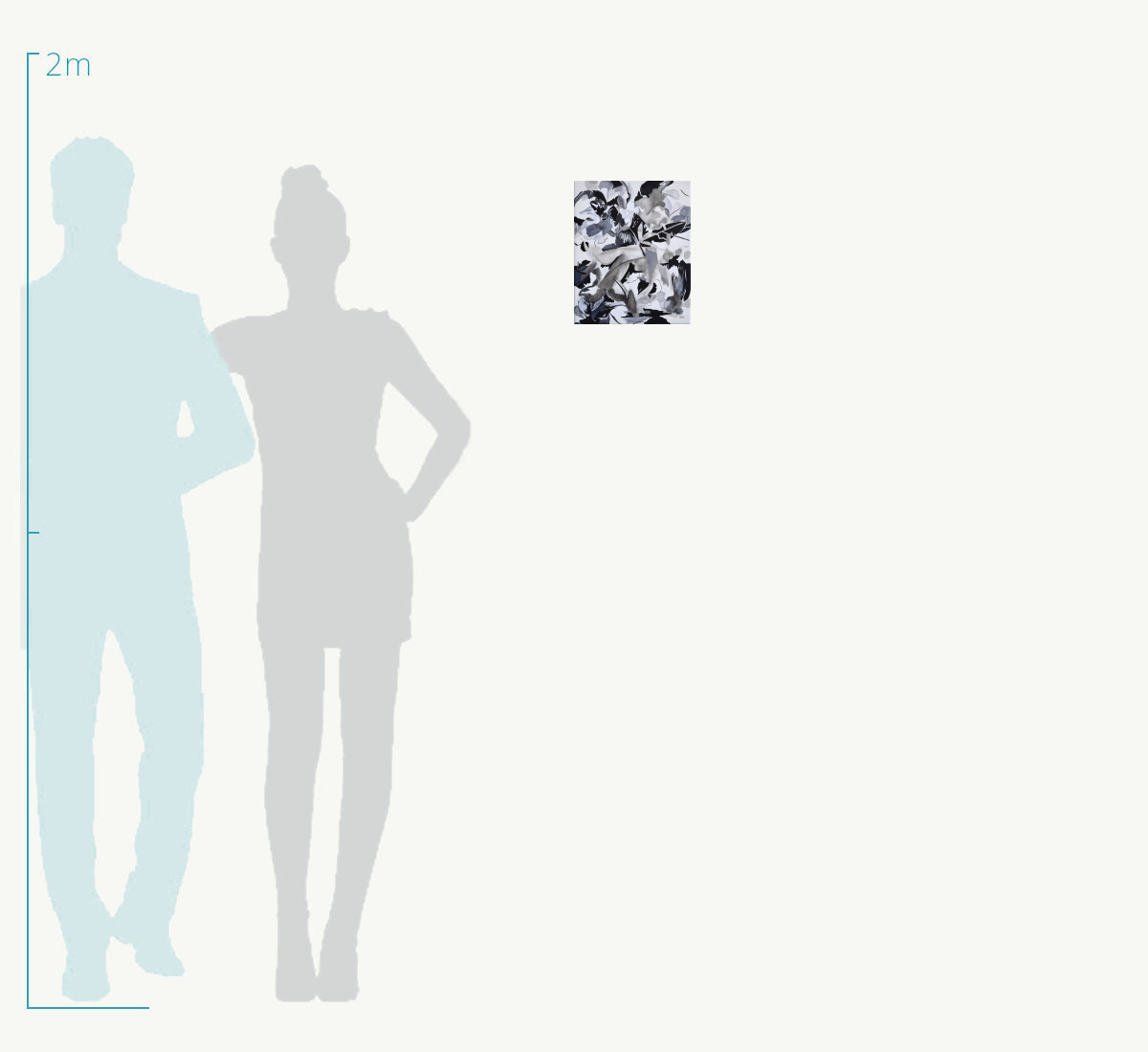 Indem die Malerin Tatiana Urban in den drei achromatischen Arbeiten „Float“, „Dark mode canvas No2“ und „In Sonnenfülle taumelnd“ auf den Einsatz von Farbe bewusst verzichtet, lenkt sie den Blick des Betrachters auf den nachgerade barocken Formenreichtum der grafischen Komposition.