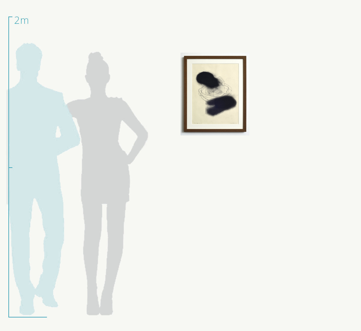 Diese Arbeit der Werkserie „inner scapes“ von Caroline Gaedechens zieht einen starken Spannungsbogen zwischen der erst auf den zweiten Blick erkennbaren, in feinsten Bleistiftlinien gehaltenen hausähnlichen Form und den dazu im krassen Gegensatz bedrohlich im Vordergrund hängenden, mit Pastellkreide verdichteten Gouache-Wolken. Das Ich als Haus, umgeben von einer fremden und beängstigten Außenwelt ist ein zentrales Thema im Schaffenskanon der Hamburger Zeichnerin.