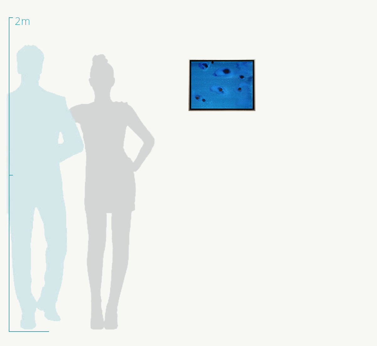 Auch in diesem monochrom blau gehaltenen Werk erscheinen abstrakte organische Formen, die hier an Lebewesen aus der Tiefsee erinnern. Wie eine Momentaufnahme bei einer Tauchfahrt schweben diese vor dem Betrachter und wecken Assoziationen aus einer uns meist verborgenen Welt. Dieses Bild aus der Serie “Blauarbeiten“ kommt in einem edlen Schattenfugenrahmen.